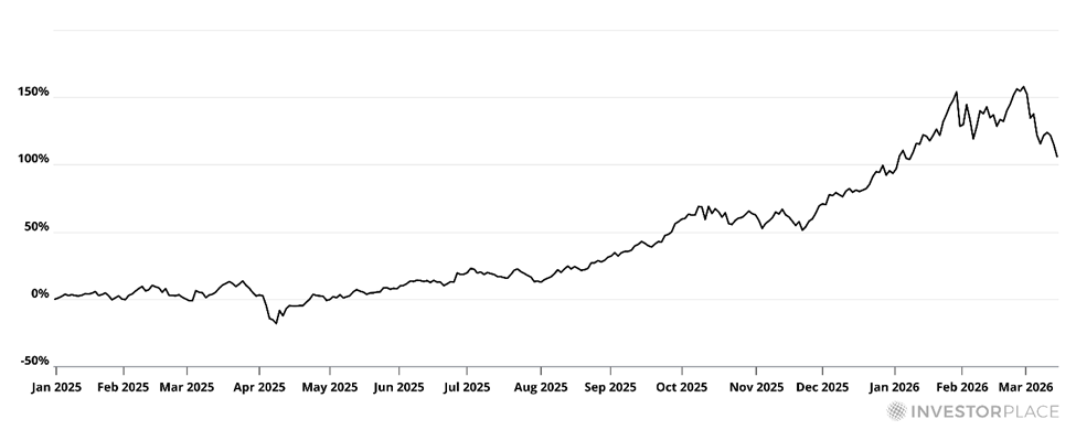 This has been driving big gains in the Global X Copper Miners ETF (COPX). As you can see below, COPX has more than doubled since the beginning of 2025.