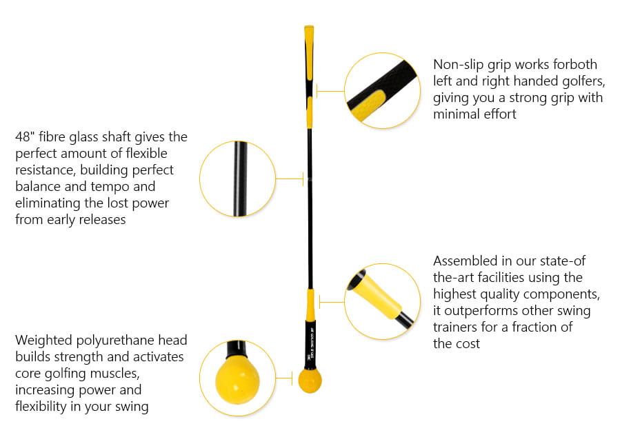 ENHANCE YOUR PRE-ROUND ROUTINE WITH THE SPEED & TEMPO TRAINER. HELPING BRING A SMOOTH TRANSITION TO YOUR SWING THAT RESULTS IN LESS TENSION IN THE BODY AND FASTER CLUBHEAD SPEED.