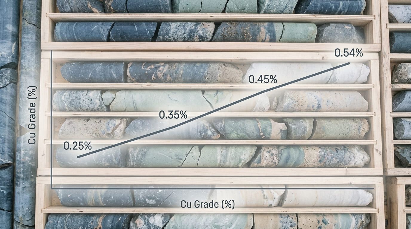 The Arizona story grabs the headlines. But a quieter signal came the same day. Copper Giant Resources Corp. shared drill results from its Mocoa project in southern Colombia. Hole MD-057 hit 532 metres at 0.25% copper — with a 191-metre stretch at 0.54%. Hole MD-056 found metal in a zone the old model had written off as waste.