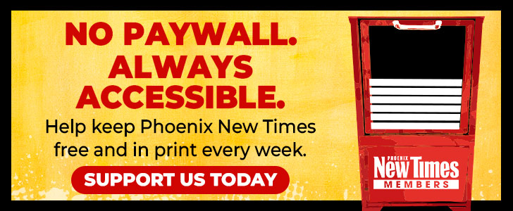 Phoenix New Times thrives because of support from people like you. Campaigns like this are essential to sustaining our work. If you give today, you’ll be removed from the rest of this campaign. Thank you for being part of this community.
