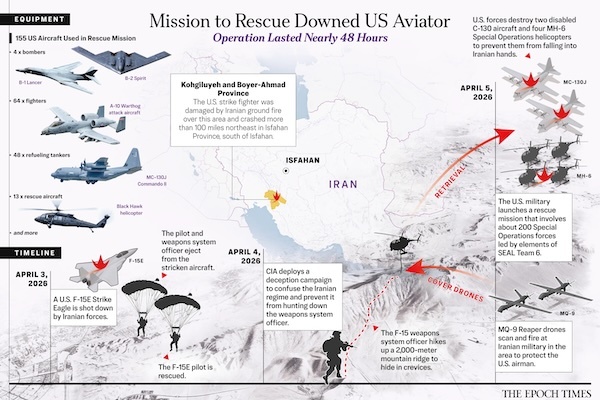 President Donald Trump was assured by the Pentagon and Central Intelligence Agency that the assembled array of special forces, precise intelligence, high-tech electronics, and battle-tested aircraft could extract a wounded U.S. airman being hunted deep inside Iran, but was cautioned that it would be risky and could go sideways in a hurry.